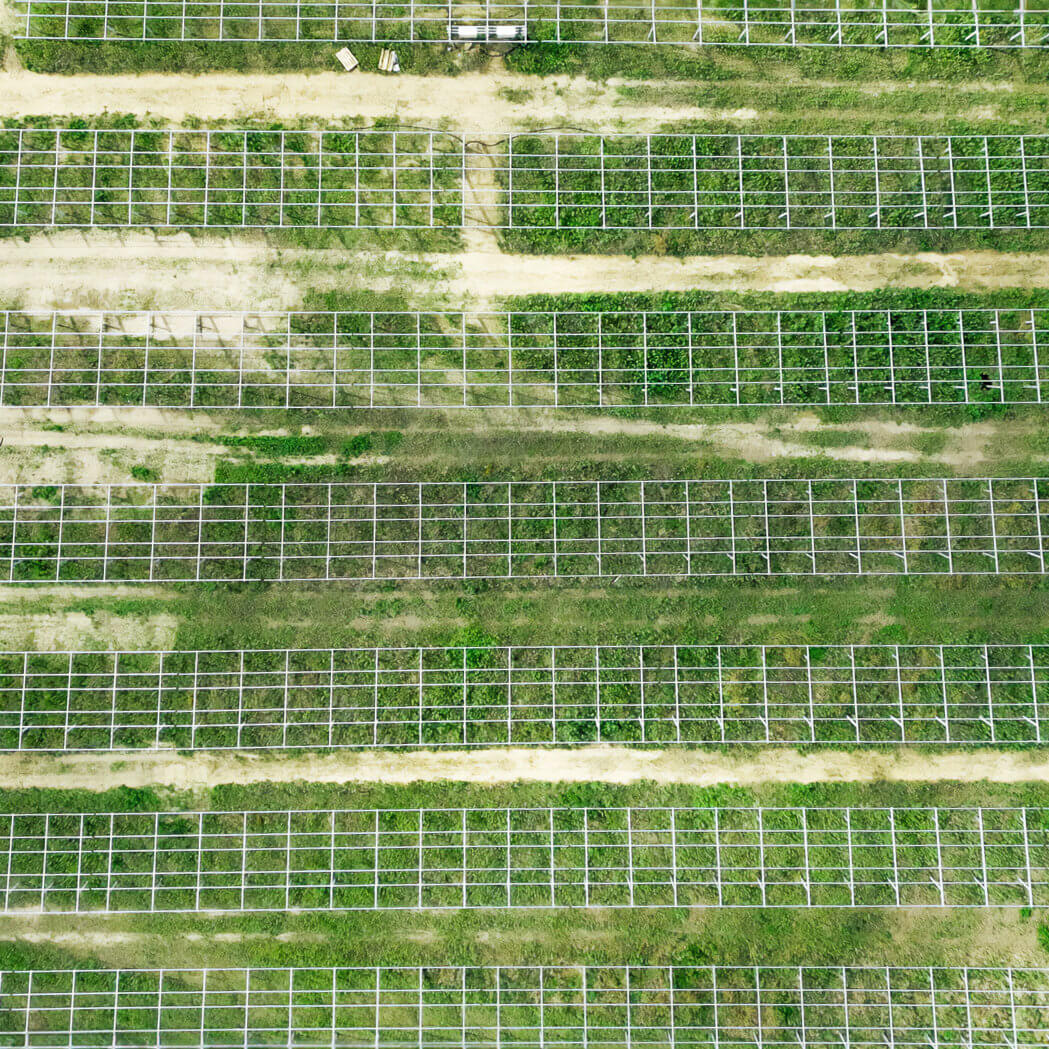 During the pile-driving works, the substructure is fixed into the ground. In the meantime, a large part of the substructure of our solar park is already in place.